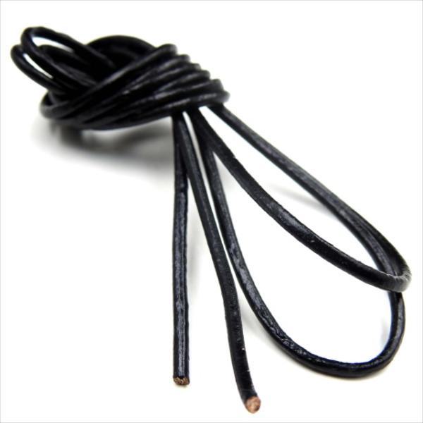 切り売り カット売り 1m 牛革紐 丸紐 2mm ブラック 黒 1メートル レザー 革紐 革ひも 革ヒモ 丸革紐 コード 紐 ネックレス ブレスレット アクセサリー W-008