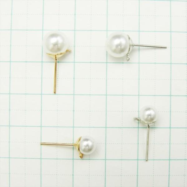 パール付き ピアスピン 6mm 8mm カン付き 10個セット ポストピン 金具 穴無しパール ホワイト 樹脂 ピアスパーツ イヤーパーツ 耳 ピアス イヤリング