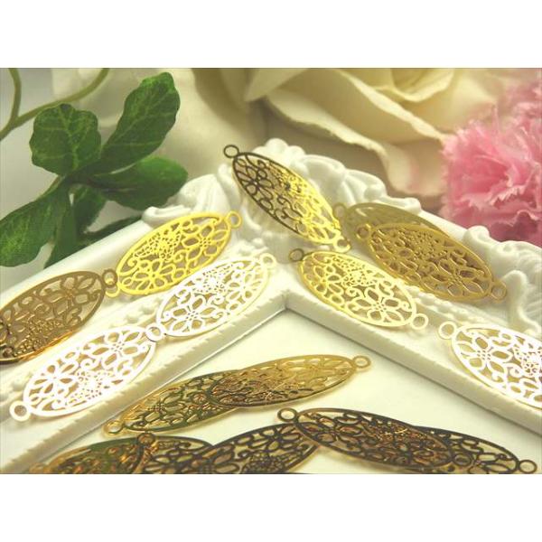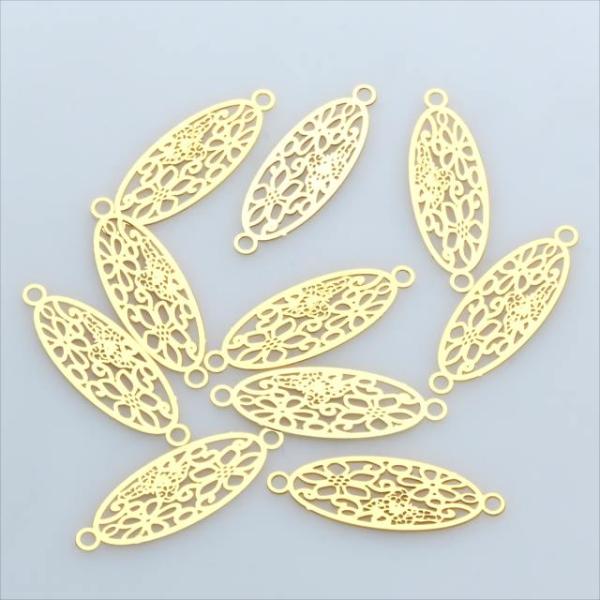 透かしパーツ ゴールド 10枚セット 細長 コネクター カン×2 sg17 チャーム レジン スカシパーツ アクセサリー パーツ 楕円 オーバル 金 金具 カン付き T-340