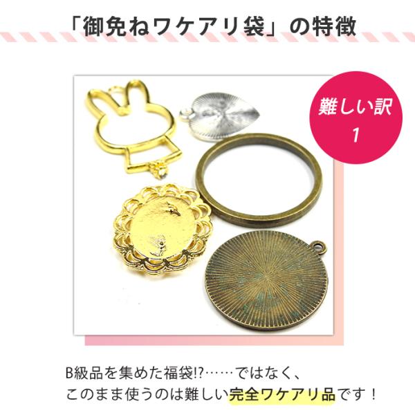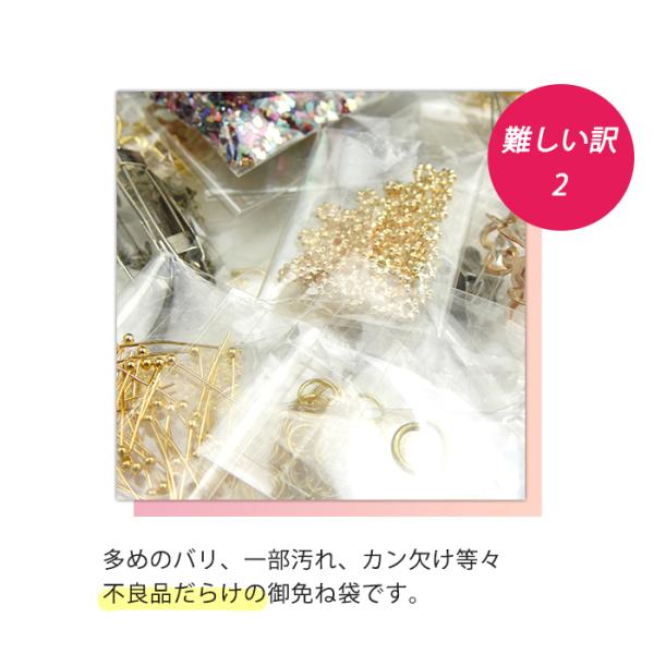 訳有り御免ね袋 アクセサリーパーツ お一人様1点まで ビーズ パーツ チェーン チャーム ミール皿 レジン枠 デコパーツ ストラップ等 訳あり B級品 ジャンク