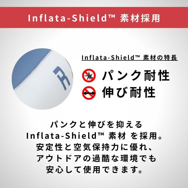 Inflata-Shield素材は、穴が開きにくく、伸縮性を抑えることで安定性と空気保持力を高めます