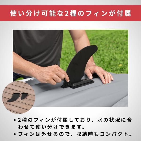 様々な水面状況で方向性のあるサポートを提供する、サイズの異なる取り外し可能なフィン2個
