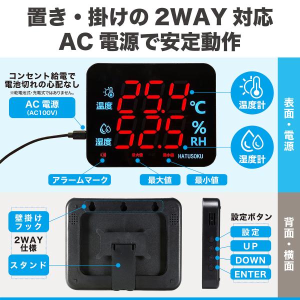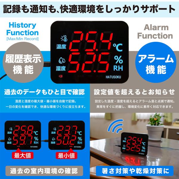 [ON04] LED温湿度計 デジタル 温度計 湿度計 業務用 家庭用 見やすい 手動校正 最高/最低値記録機能 HATUSOKU
