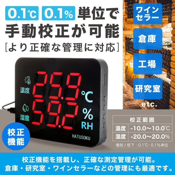 【手動校正機能】温度と湿度の0.1℃、0.1%単位での校正が自分でできます。より正確性をお求めの方におすすめです。