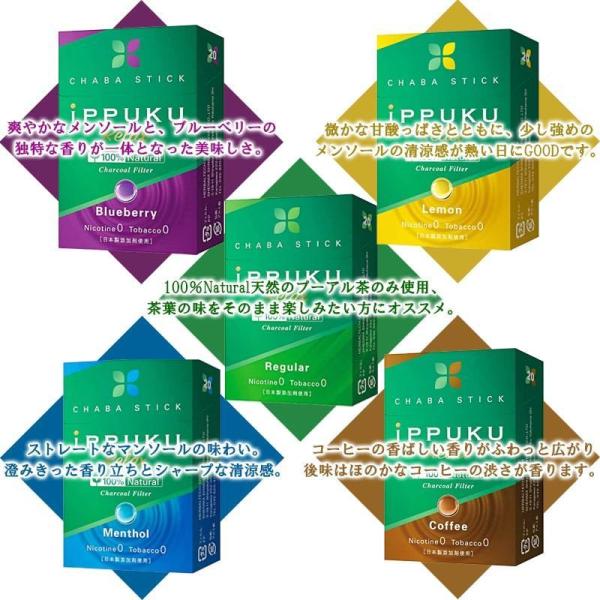 茶葉スティック 禁煙 iPPUKU ニコチンゼロ たばこ代用 3箱セット 5フレーバー レギュラー メンソール ブルーベリー レモン コーヒー アイスメンソール
