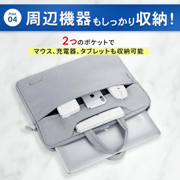 ●ポイント4:周辺機器もしっかり収納!2つのポケットでマウス、充電器、タブレットも収納可能