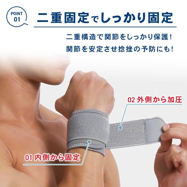 ポイント1.二重固定でしっかり固定 手首の安定化を図ります。