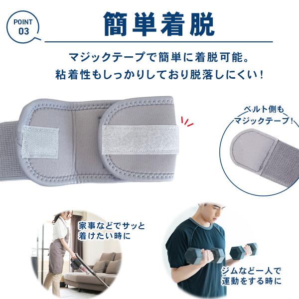 ポイント3.簡単に着脱!マジックテープとロックバックルで簡単に着脱できます。