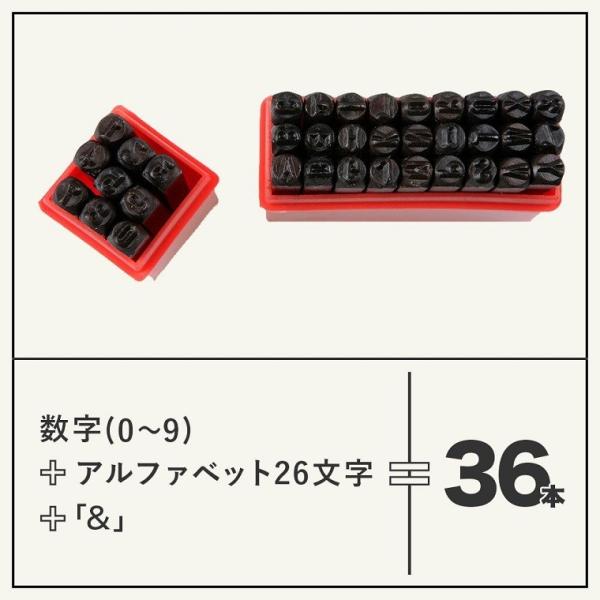 レザークラフト 刻印 セット 5mm アルファベット + 数字 36本組 刻印セット 打刻印 ホック打具