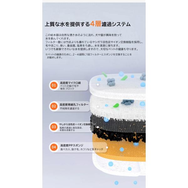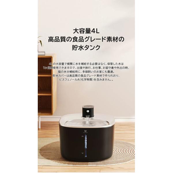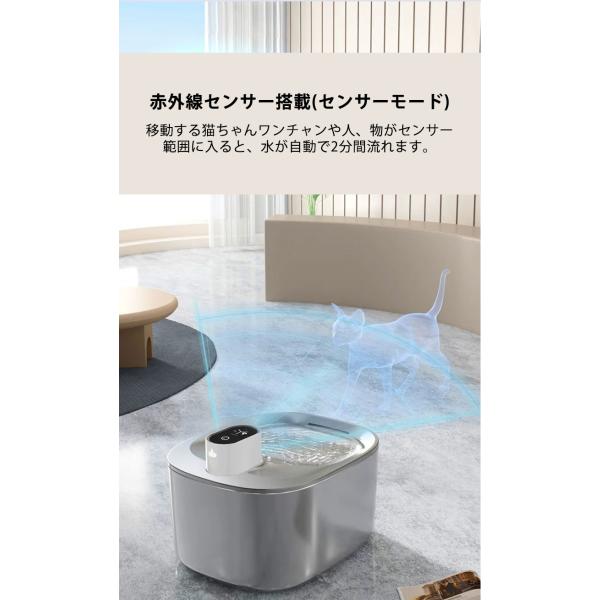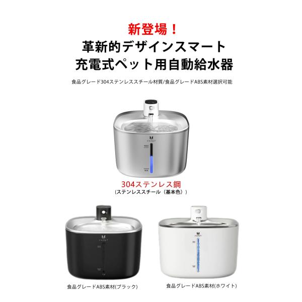 SUS304ステンレス 自動 ペット給水器 犬 猫自動給水器 循環式給水 大容量4L 器水量目視可能 2WAY給電 超静音 ワイレス給電可 USBケーブル センサー 動作検知