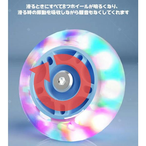 【ライト搭載】ホイールはABEC-7ベアリング採用して、スムーズを保証します!滑る時の振動を吸収しながら騒音もなくしてくれます。