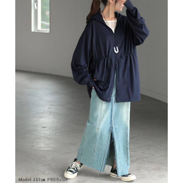 パーカー UVカット レディース トップス アウター ロング 接触冷感 吸水速乾 無地 長袖 お尻が隠れる ストレッチ