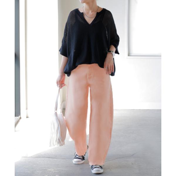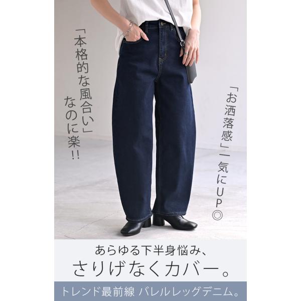パンツ デニム バレルレッグ ロング レディース ボトムス ロングパンツ ジーパン ジーンズ 無地 バルーン