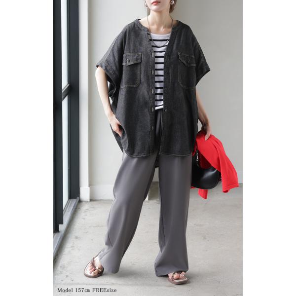 シャツ デニム 半袖 ブラウス レディース トップス ロング デニムシャツ ジーンズ Gジャン 涼しい Vネック 薄手 ライトオンス ヴィンテージ風 前開き 羽織り