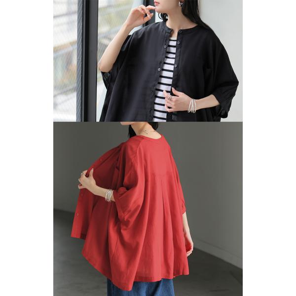半袖シャツ 半袖ブラウス オーバーサイズシャツ オーバーシャツ バンドカラー 襟無し ロングブラウス 長い 長め ロング丈 ミドル丈 大判 大判シャツ 羽織り ライトアウター 華奢 通勤 カフス 白シャツ ドルマンシャツ ドルマンスリーブ ぽわん 7分袖 五分袖 ブラック 半袖 薄い 透け 接触冷感 黒色 ホワイト 白色 レッド 赤 ブルー 青 旬 トレンド プラスサイズ ビッグシルエット ビッグ ビック big ビックサイズ ビッグサイズ オーバーサイズ 大きい 大きめ フリーサイズ フリー S M L LL 2L XL 3L XXL LLL カジュアル ベーシック オフィス オフィスカジュアル 着回し シンプル 大人 大人カジュアル オトナ 女性 綺麗 きれい キレイめ きれいめ 高見え 上質 上品 20代 30代 40代 50代 60代 おしゃれ お洒落 オシャレ 春 夏 秋 冬 春夏 秋冬 HUG.U HUGU ハグユー はぐゆー