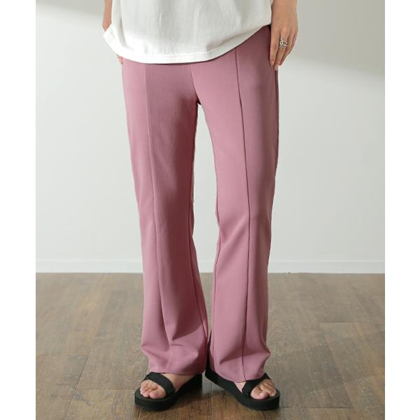 パンツ レディース ワイドパンツ ロング フレアパンツ センターライン ゴム ボトムス ハイウエスト きれいめ カラーパンツ