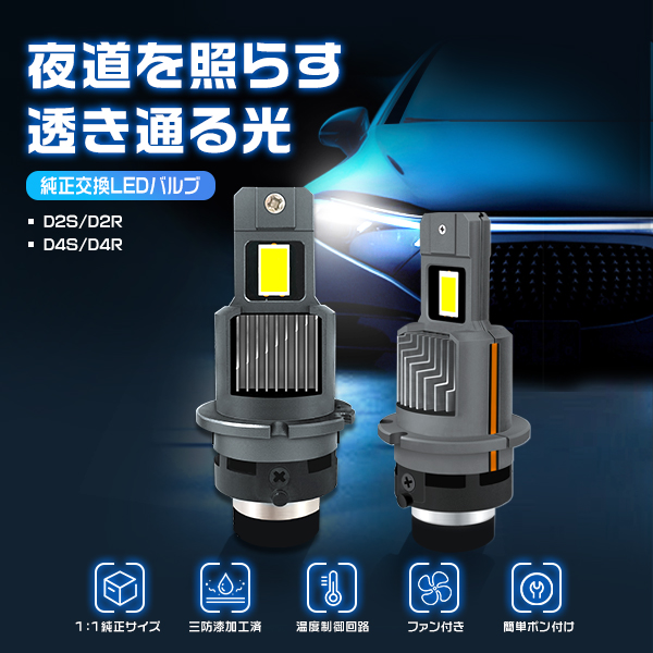 [期間限定SALE]LEDヘッドライト D2S D2R D4R D4S 18000lm 車検対応 超高輝度チップ HIDより明るい 配線レス ポン付け 6000K 純正HID交換 2個セット 2年保証