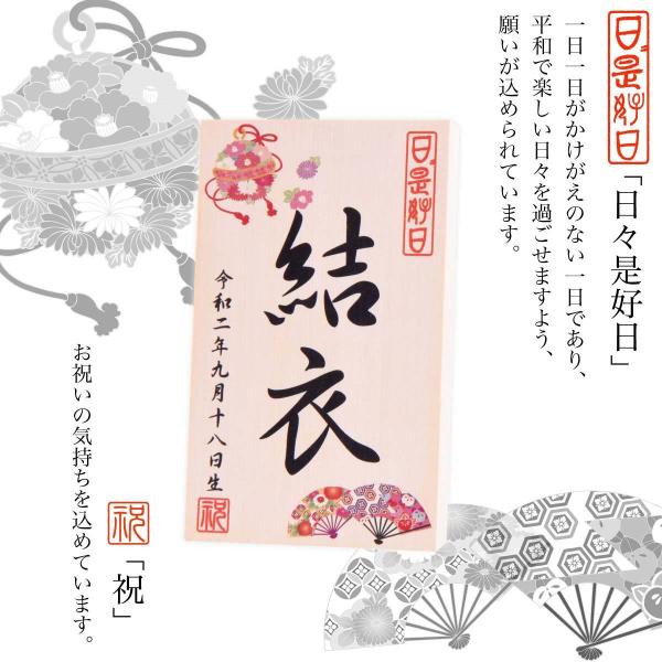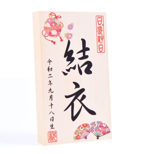お人形や羽子板の脇にお飾り頂く、お名前・生年月日入りの立札です。