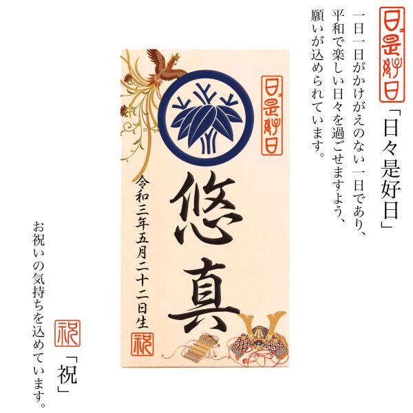 五月人形 オルゴール付き立札 家紋・名前・生年月日入り 男の子 B:鳳凰と兜 送料無料