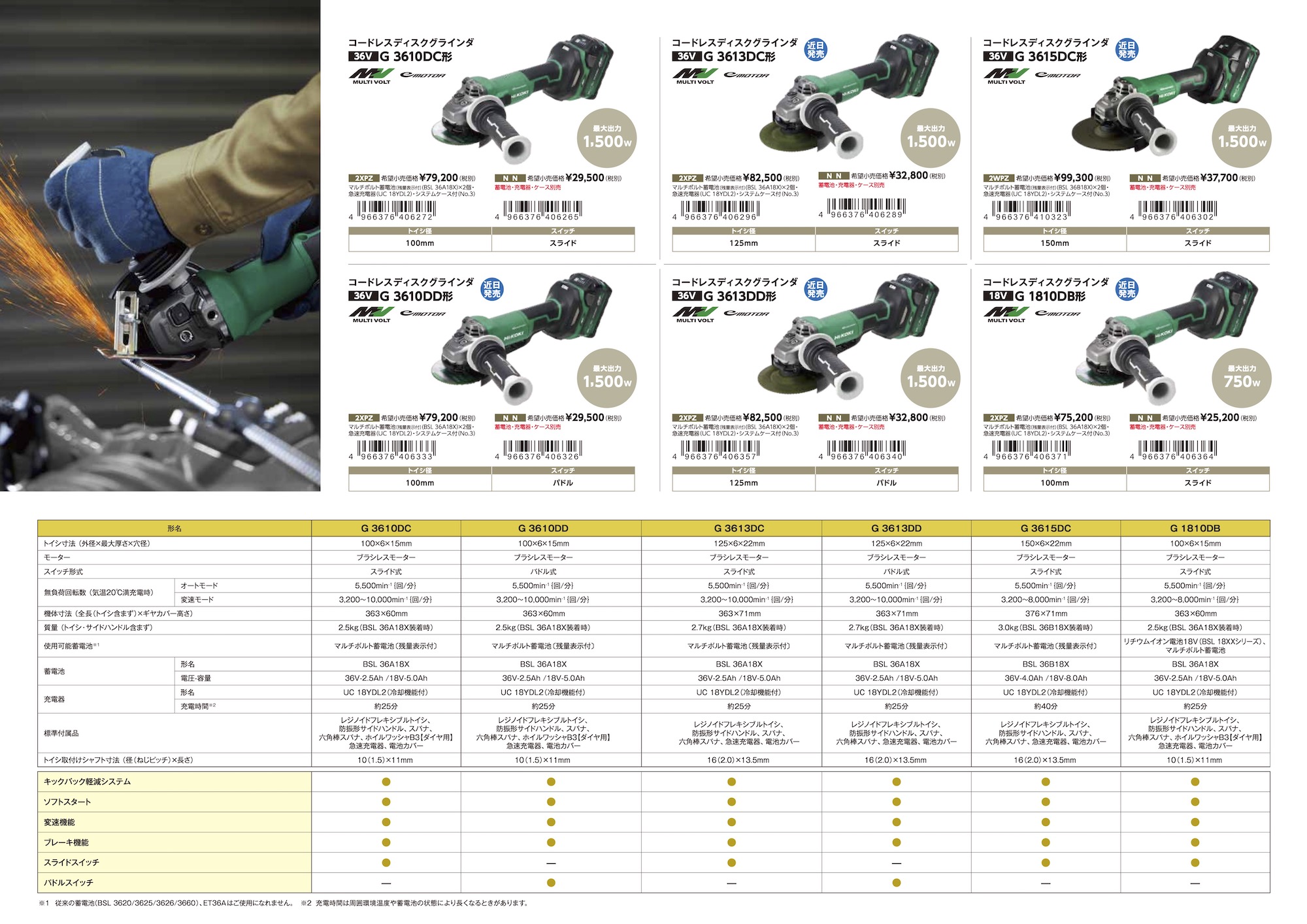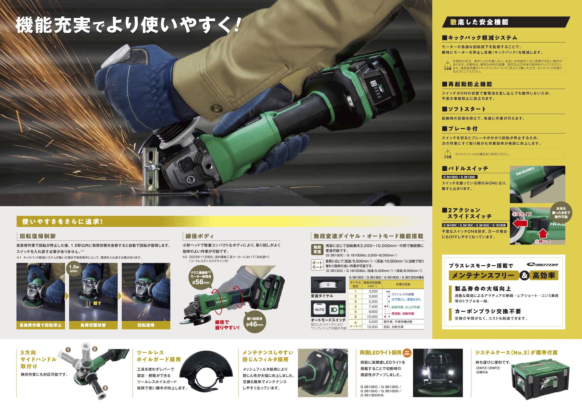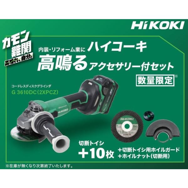 キャンペーン限定仕様 ハイコーキ マルチボルト 36V 100mm コードレスディスクグラインダ G3610DC(2XPBZ)のサービス品付属仕様 G3610DC(2XPCBZ)