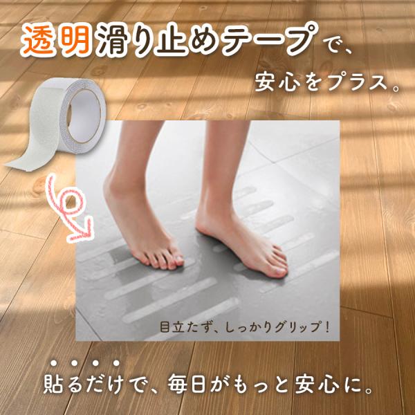 滑り止めテープ 階段 透明 滑り止め 転倒防止 事故防止 すべり止め すべりどめ 目立たない ペット 犬 猫 子供 高齢 安全 安全対策 テープ 防水 賃貸 屋内用 ノンスリップ 手すり 階段 玄関 浴槽 2.5cm 5cm 10cm 5m