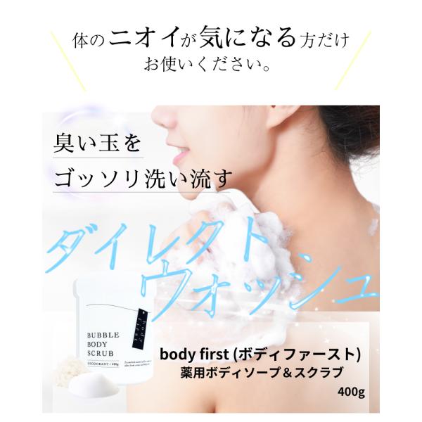 最終価格 売り切れ御免 400g 薬用ボディスクラブ body first ボディファースト ボディソープ ニオイ 原因菌 徹底殺菌 泡のクレンジングパワー 角質ケア お尻