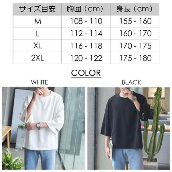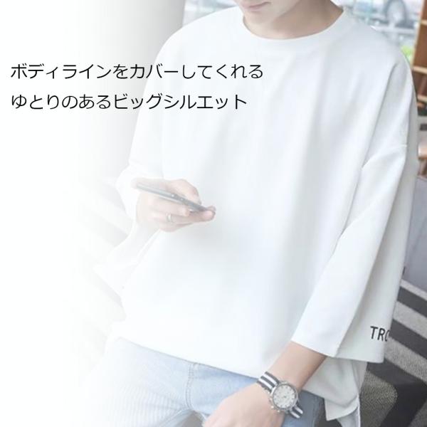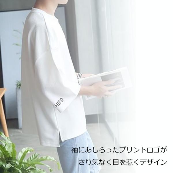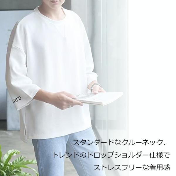 送料無料 メンズ Tシャツ ゆったり ルーズ 7分袖 肩落ち カジュアル 英字 丸首 トップス シンプル オーバーサイズ ファッション 無地 かっこいい
