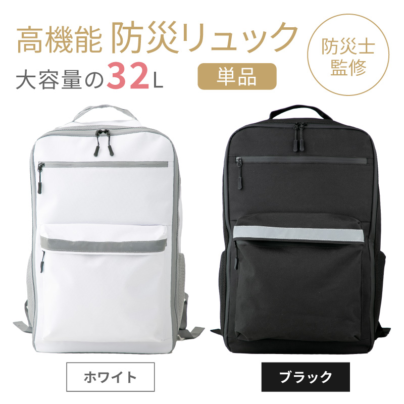 防災リュック 32L ホワイト ブラック 防災リュックのみ 単品 大容量 地震 災害対策 避難時 災害時 防災用品 非常用 自治体 防災バッグ 撥水 家族 おしゃれ