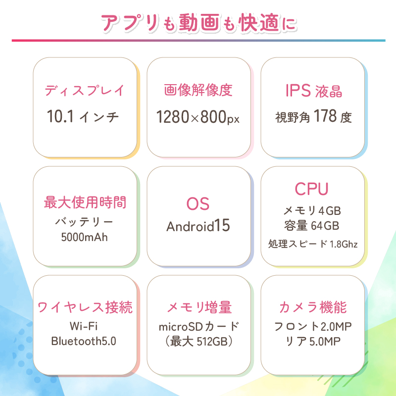 タブレット 本体 10.1インチ キッズタブレット 子供用 wi-fiモデル android 知育 10インチ 学習 遊び 入園祝い 入学祝い 3歳 4歳 5歳 小学生 かわいい おすすめ