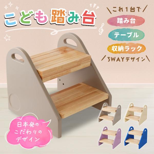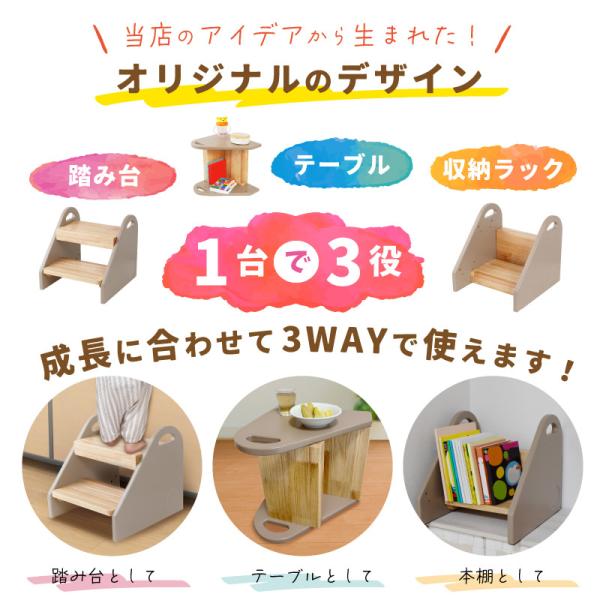 踏み台 子供 子ども キッズステップ ステップ 本棚 テーブル 2段 3way 保育園看護師推奨 天然木 収納 洗面所 トイレ 手洗い キッチン 台所 安全 二段 新生活