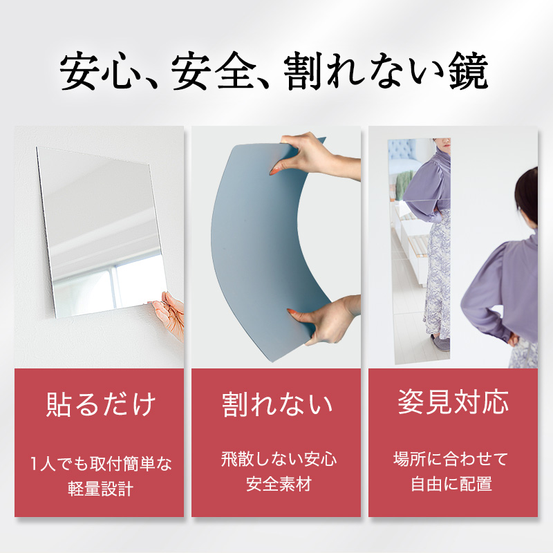 鏡 全身鏡 姿見鏡 姿見 4枚セット 30cm×30cm 割れない 貼る セット アクリル ミラー 飛散防止 二次災害防止 ケガ防止 穴あけ不要 賃貸OK 貼付け可能
