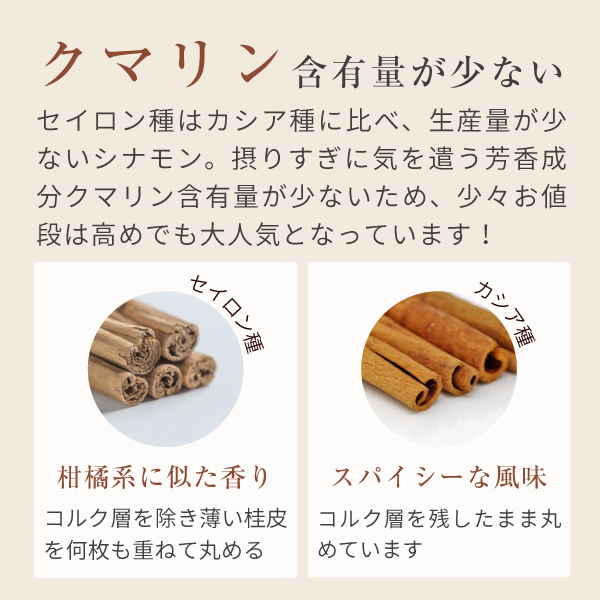 ほのかな甘みと辛味、独特の香りをもつセイロンシナモン100%のパウダー