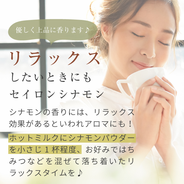 シナモンに含まれる豊富な栄養素は、リラックスしたい女性にもオススメです♪