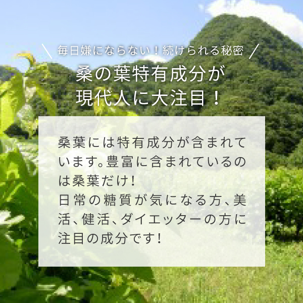 桑の葉特有成分が、糖質が気になる方やダイエッターの方に注目されています。