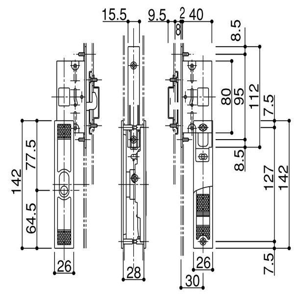 YKKAP交換用部品 戸先 内外締り錠(HH3K6310D) HH-3K-6310D 玄関引き戸 WEST 引戸錠 鎌錠 カマ錠 戸先錠 引手錠 鍵 カギ 鍵穴 玄関引戸キーまわらない 取替