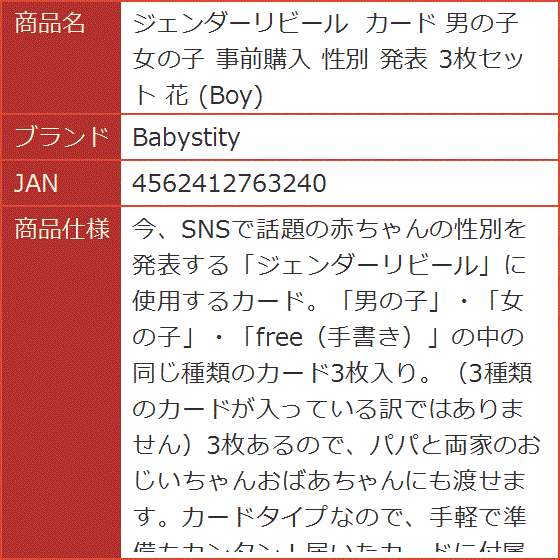 ジェンダーリビール カード 男の子 女の子 事前購入 性別 発表 3枚セット 花 Boy