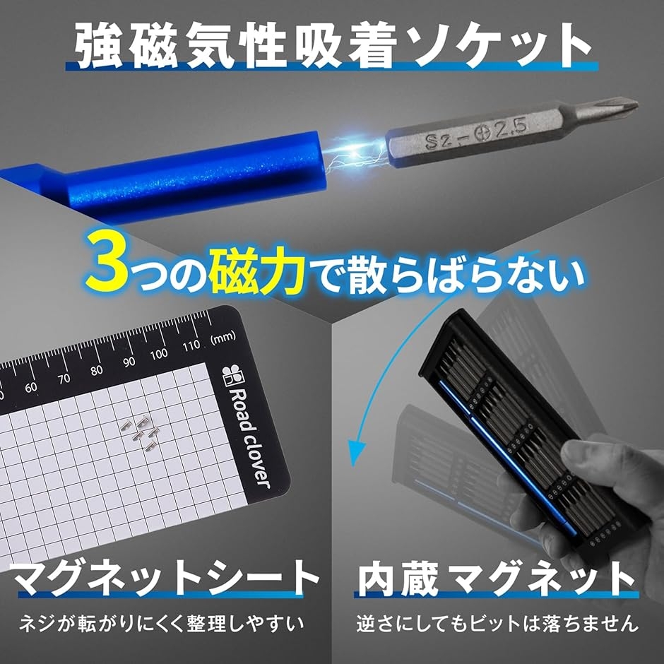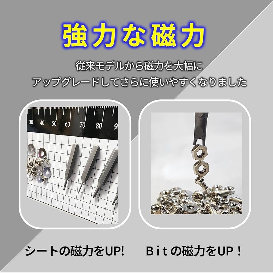 「3種類のマグネット」精密ドライバーのビットソケット・マグネットシート・ケースの内蔵マグネットと3つの磁力で作業効率を格段に向上させます。