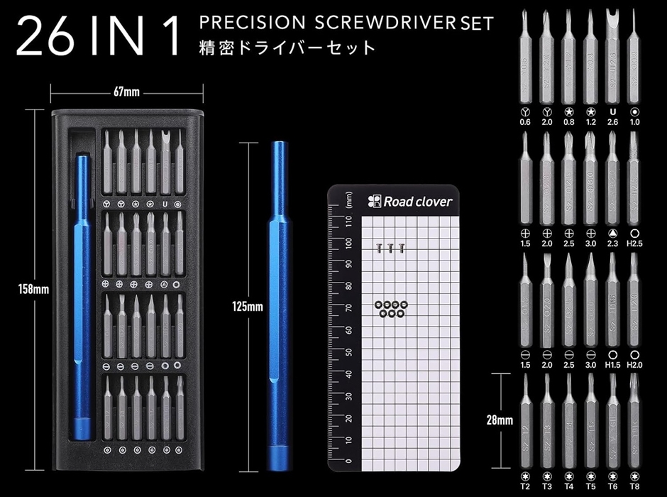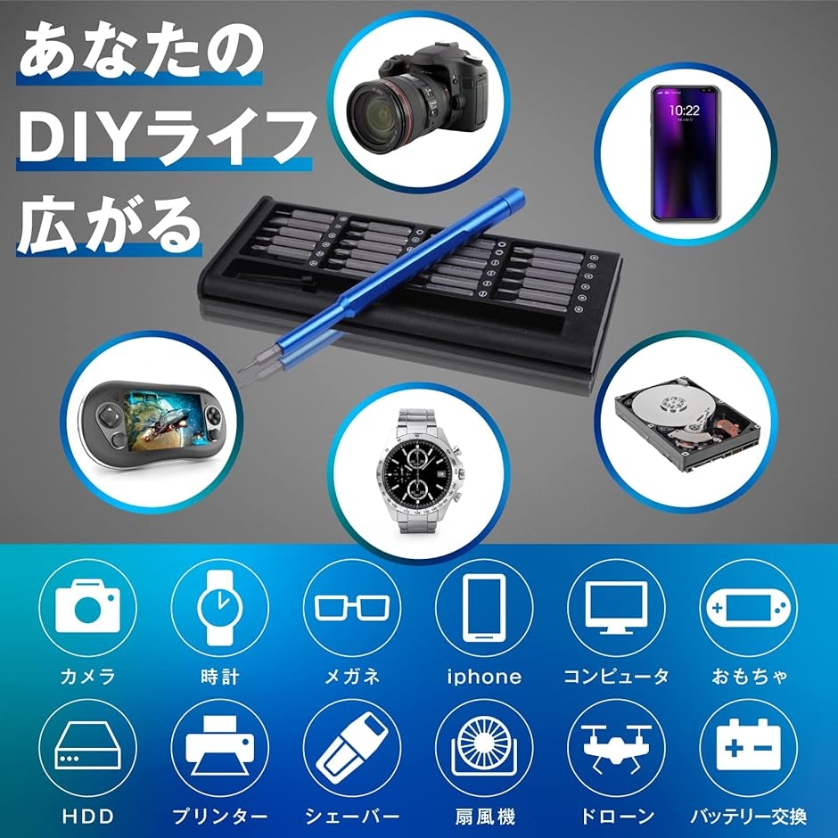 精密ドライバー セット 26in1 マグネットシートでネジ散乱防止 トルクス (ブルー)