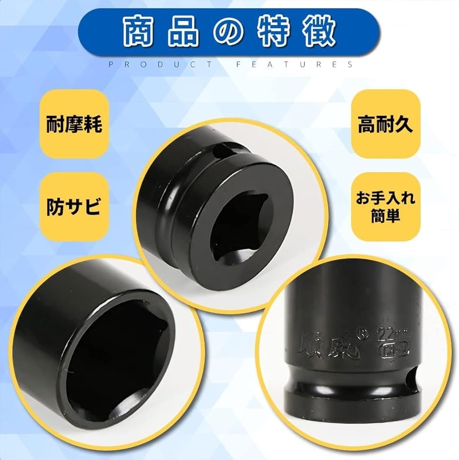 「差し込みサイズ・素材」1/2 (12.7mm)・クロムモリブデン鋼 とてもサビ強く丈夫で耐久性があります。