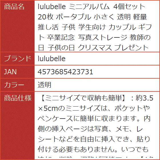 ミニアルバム 4個セット 20枚 ポータブル 小さく 透明 軽量 推し活 子供 学生向け カップル ギフト 卒業記念 教師の日 (透明)
