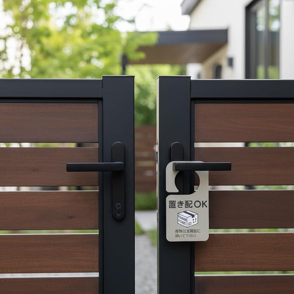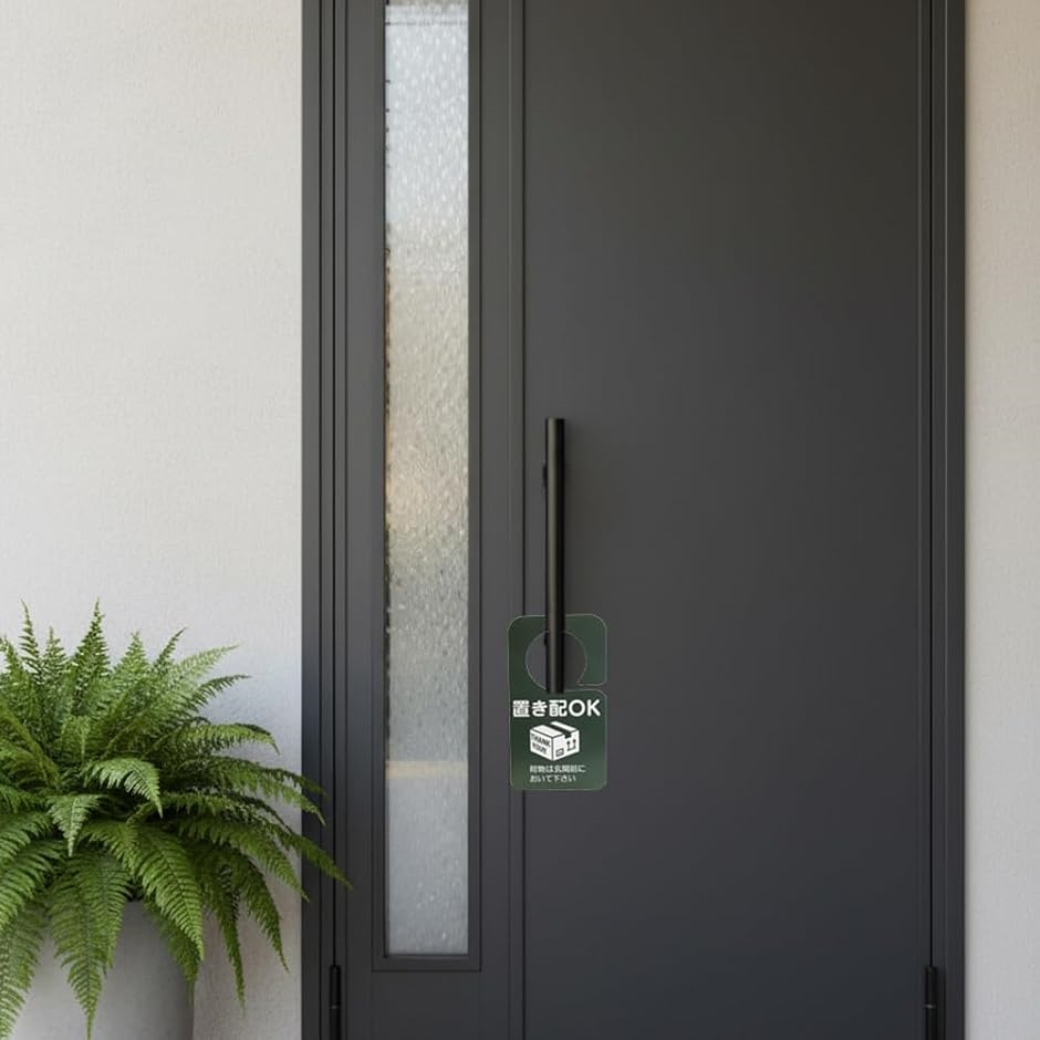 このドアノブプレートは、 「置き配OK」や「荷物は玄関前に置いて下さい」 などのメッセージを玄関先でしっかり伝えます。