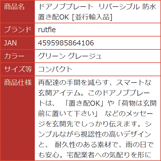 ドアノブプレート リバーシブル 防水 置き配OK 並行輸入品 (グリーン グレージュ, コンパクト)