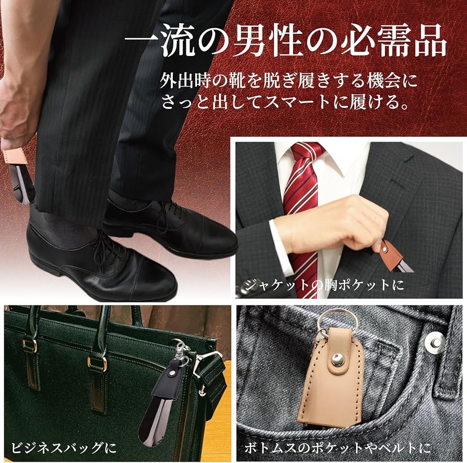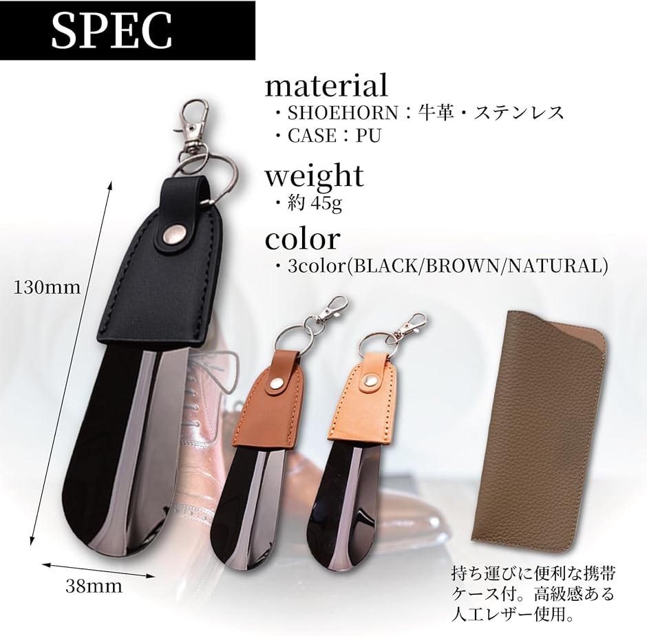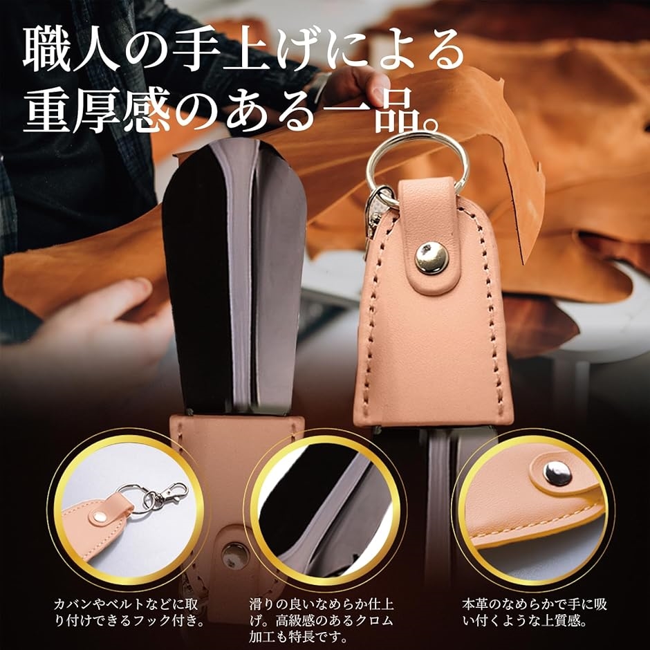 NIJISORA 本革 シューホーン 携帯 靴ベラ キーホルダー 靴べら(ベージュ)