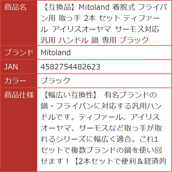 Mitoland 互換品 着脱式 フライパン用 取っ手