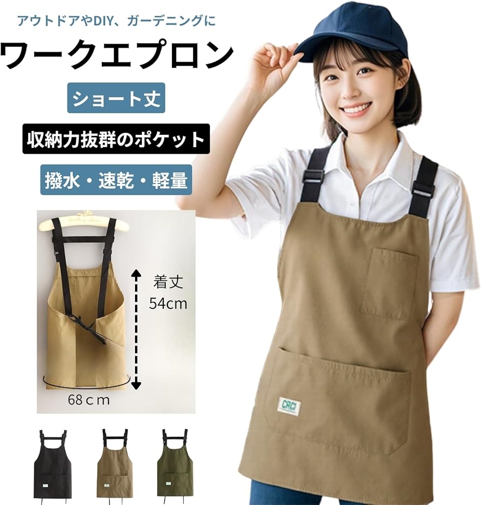 エプロン アウトドア ワークエプロン ショート丈 キャンプ 作業 DIY ガーデニング 撥水 速乾 軽量 C(ブラウン)