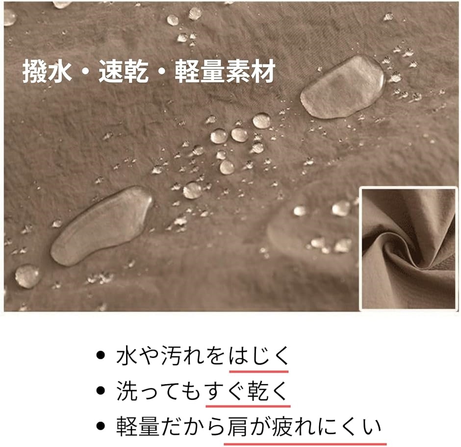 「撥水・速乾・軽量素材」ポリエステル素材に撥水加工を施し、水や汚れをはじく仕様。