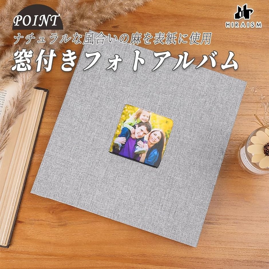 「大切な思い出を」ナチュラルな風合いの麻を表紙に使用し、お気に入りの写真が見える窓付きのデザインが魅力のフォトアルバムです。