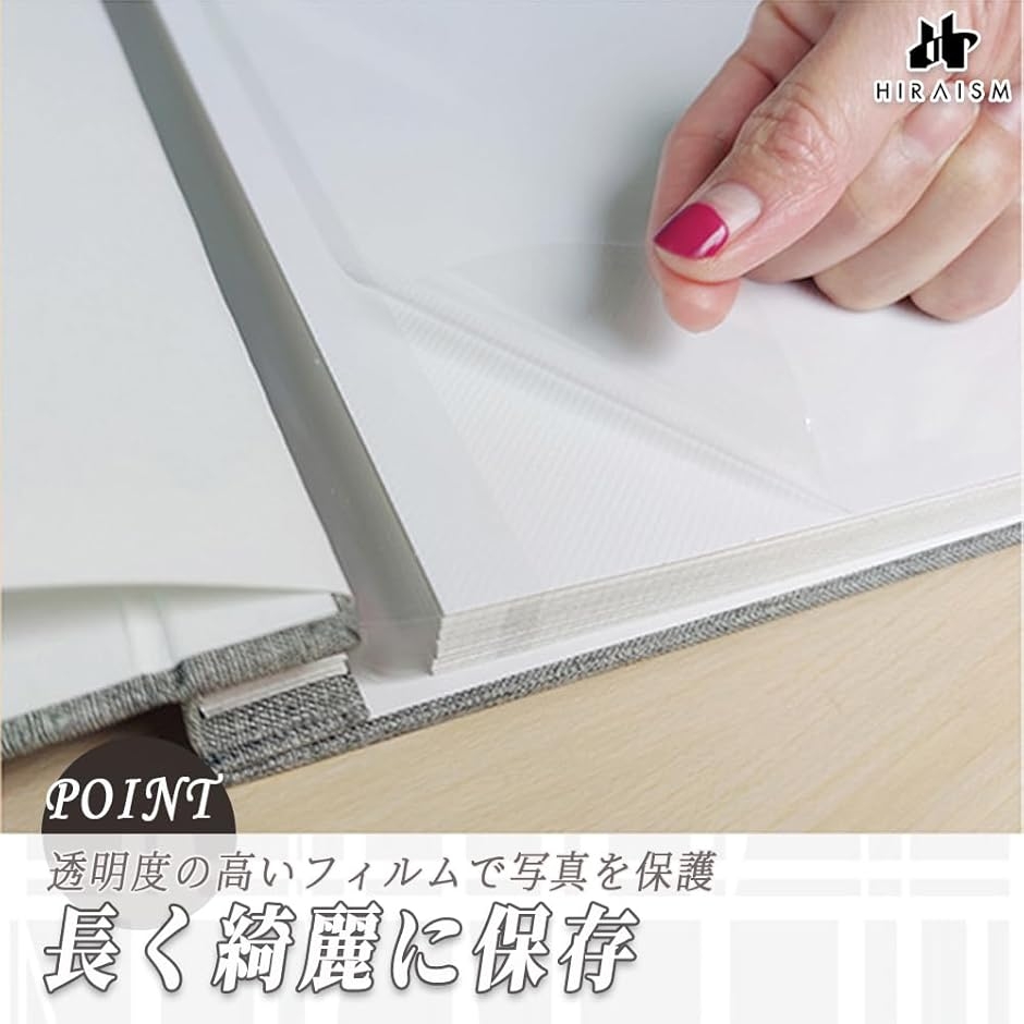 「透明度の高いフィルムで写真を保護」写真を貼り付けた後、透明の保護フィルムで覆うことで、色あせや汚れから守り、大切な思い出を長く綺麗に保存できます。