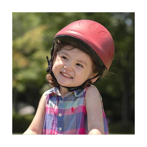 普段の生活にとけこむ、シンプルでおしゃれな「nicco(ニコ)」のこども用ヘルメットです。「ハードシェル」と「複合発泡」の採用で、コンパクトでも十分な安全性を実現しました。衝撃性に優れたハードシェル、かぶりやすくずり落ちにくいベルトの仕様、インナーパッドは取り外して水洗い可能と、機能性もバツグン。浅めのかぶりで小さな頭でも目にかからず、お子さまが安全に気持ちよくかぶれる工夫もされています。