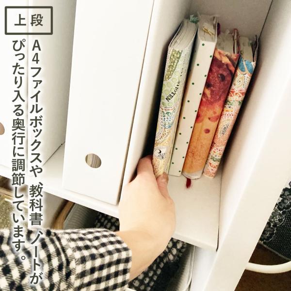 上段にはランドセル・中段にはA4サイズのノートが入れられます。